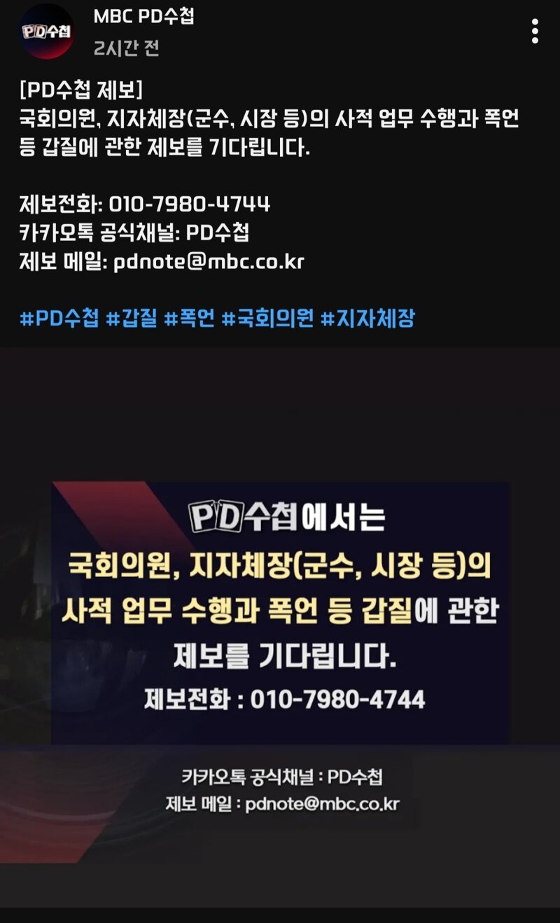* [소셜] PD수첩이 받고 있는 제보 일용소독자 2026/01/29