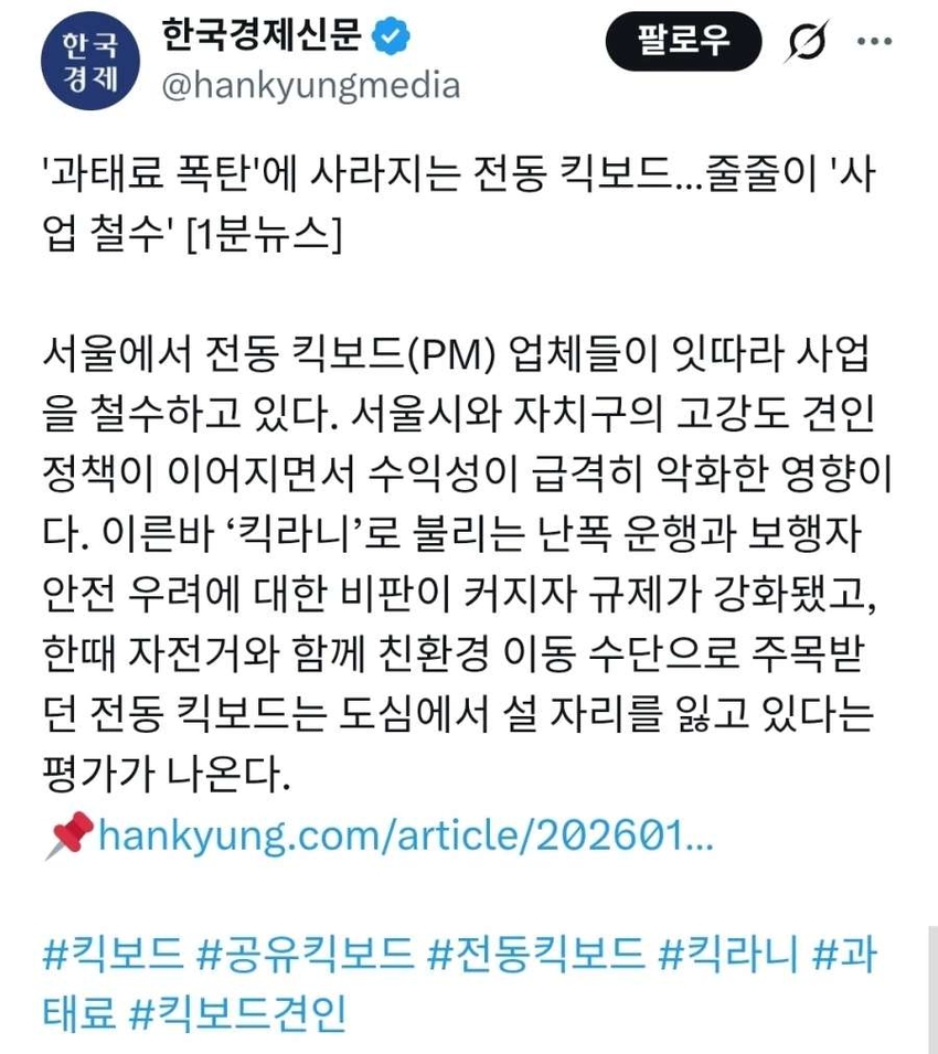 | * | [소셜] | '과태료 폭탄'에 사라지는 전동 킥보드 | 오키도다키 | 2026/02/01 |