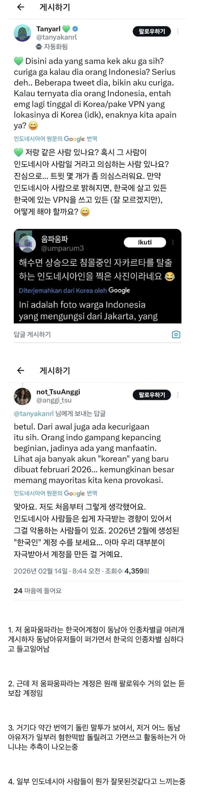 | * | [프리] | 혐한 기류가 이상하다 느끼기 시작한 인니 사람들 [1] | 부다다다다다 | 2026/02/14 |