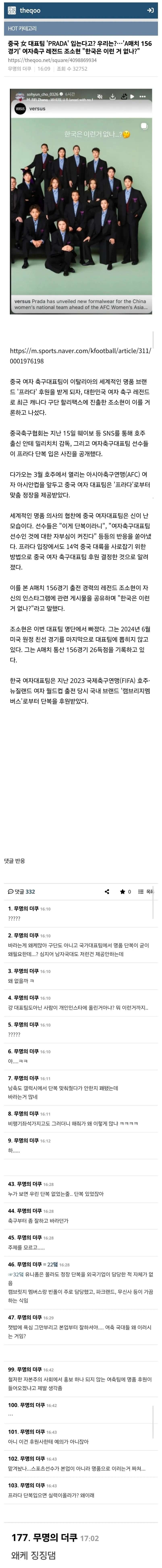 * [스포츠] 중국 女 대표팀 PRADA 입는다고? habbySE 2026/02/18
