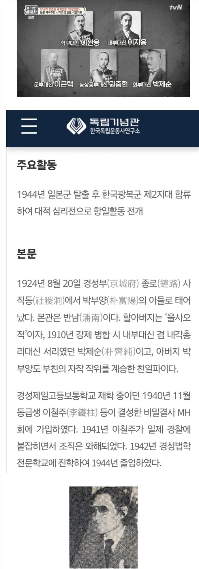 을사오적 박제순의 손자이지만 특혜를 거부하고 대한광복군에서 심리전 담당.
