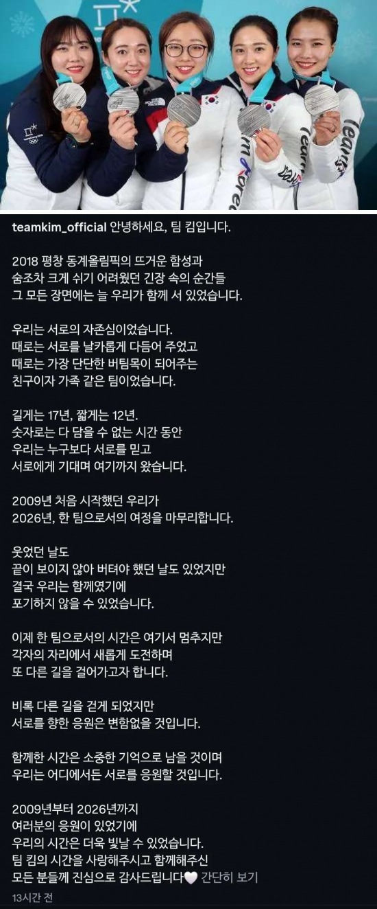 | * | [스포츠] | '영미~' 외쳤던 컬링 팀 킴, 17년 만에 팀 해체 | 닥터소맥이 | 2026/03/04 |