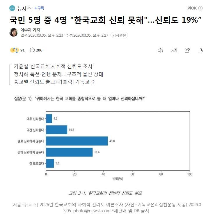 | * | [소셜] | 국민 다섯 중 넷은 교회 신뢰 못해 [1] | 솔방울소스 | 2026/03/05 |