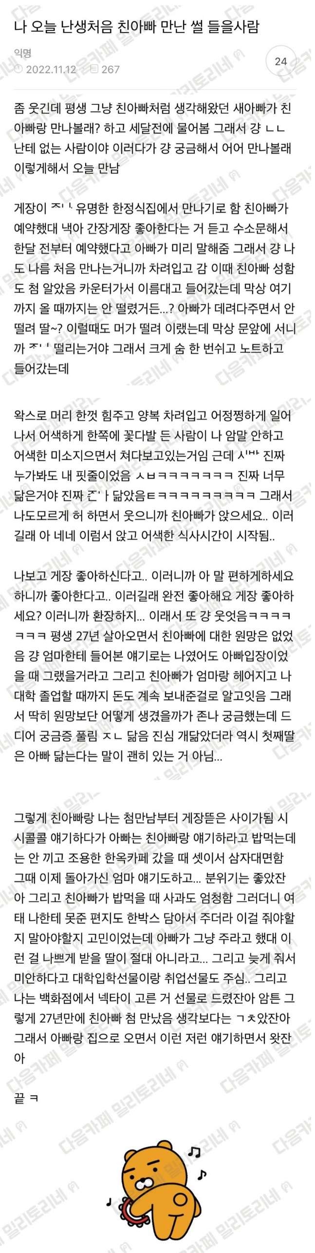 * [프리] 난생 처음 친아빠 만난 썰 부다다다다다 2026/03/05