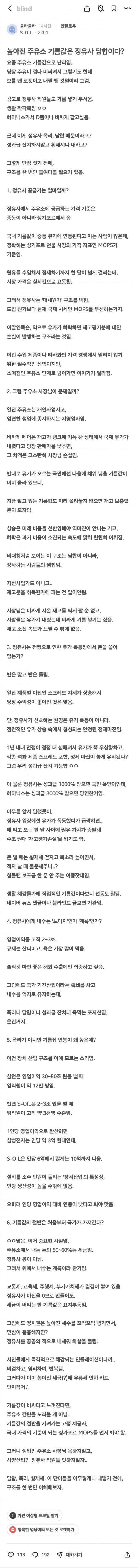| * | [프리] | 블라에 올라온 에스오일 직원 글 | 카와이데쓰 | 2026/03/08 |