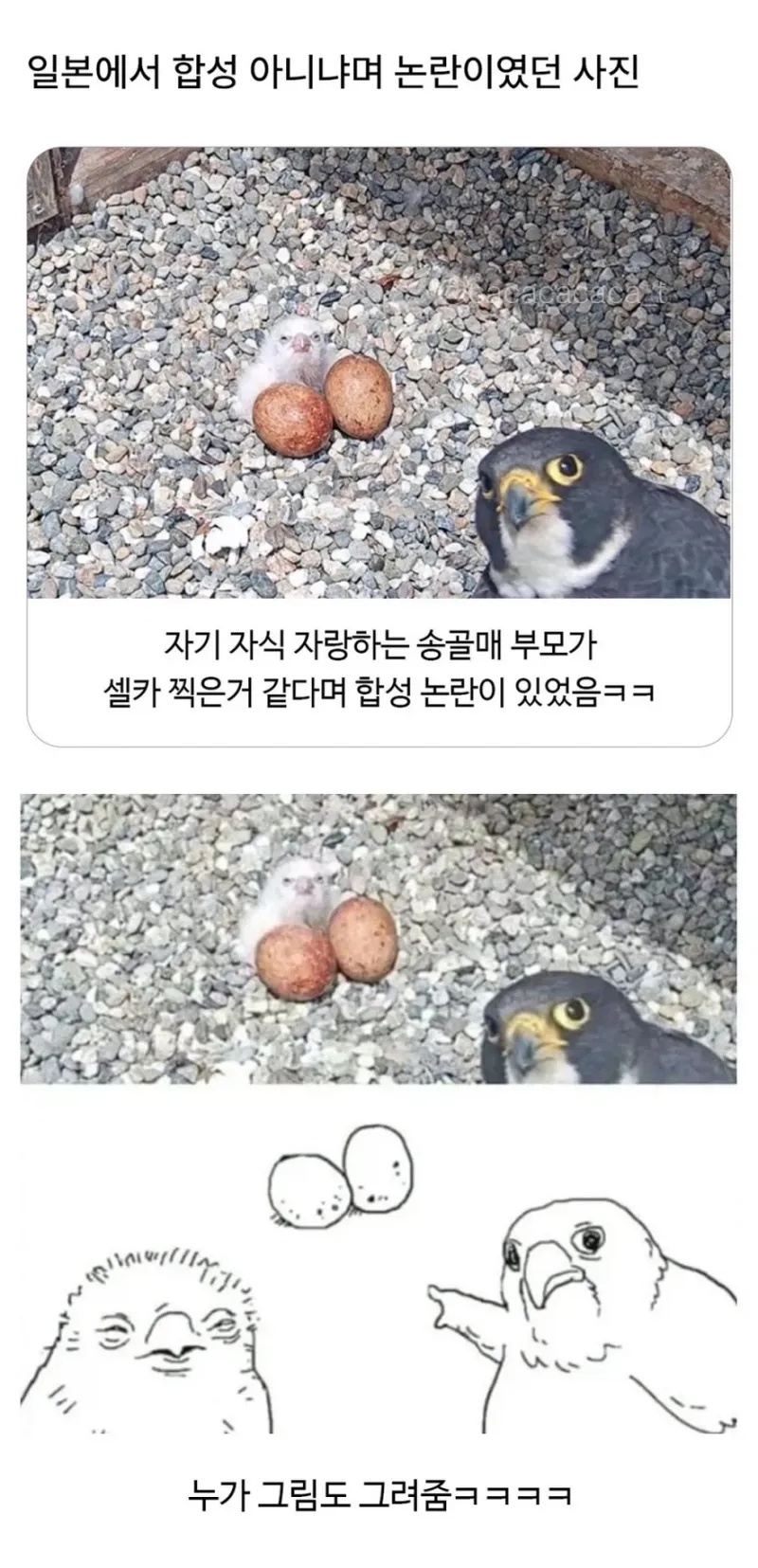 뭔가 밤새 부화 직전의 알들을 지켜본 부녀의 셀카 같아