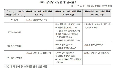 한편, 소비자시민모임에 따르면 2017∼2019년 '1372 소비자상담센터'에 접수된 즉석갈비탕 관련 상담 136건 가운데 고기양을 포함한 '품질 불만'이 54.4%를 차지했다.