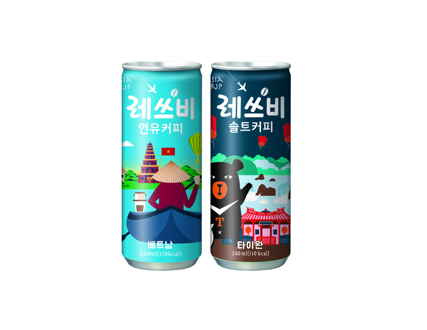레쓰비 연유커피는 베트남산 원두 특유의 진한 커피 맛에 연유를 더해 달콤하면서도 고소한 맛을 느낄 수 있다. 레쓰비 솔트커피는 부드럽고 진한 커피에 소금을 넣어 단맛과 짭조름한 끝맛이 조화롭게 어우러졌다. 패키지는 나라별 상징물 또는 캐릭터를 활용해 베트남과 타이완 고유의 느낌을 살렸다.