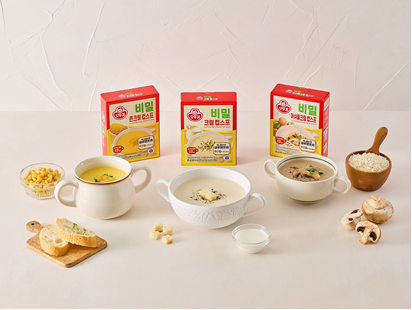 11일 오뚜기에 따르면 비밀 컵스프는 밀가루 대신 국산 쌀가루를 사용한 글루텐프리 제품. 오뚜기 크림스프의 맛을 계승한 크림, 콘크림, 머쉬룸크림 3종으로 구성됐으며 소화 부담을 줄임.