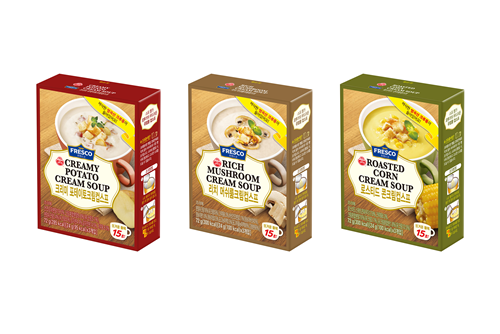 리뉴얼된 '프레스코 컵스프'는 기존 '오뚜기 컵스프'에서 디자인과 제품명을 변경, 풍미와 식감을 개선해 새롭게 선보임. 특히 크루통을 강조한 고급스러운 패키지로 세련된 이미지를 강화.