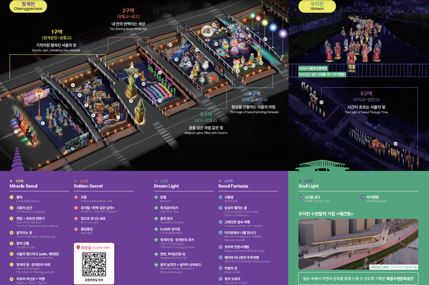 또 탄성을 자아낼 '빛의 오로라' 연출을 통해 시각, 청각, 촉각을 종합적으로 자극하는 생동감 '넘사벽'의 경험을 제공하며 시민 참여 이벤트 및 '포켓몬 GO 2025 서울빛초롱축제 이벤트' 등 글로벌 협력 이벤트 병행. 우이천 일대는 산타마을 테마 포토존 및 가족형 체험공간 운영.