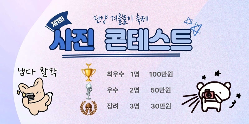 한편 더욱 상세한 행사 관련 정보는 단양관광공사 축제 홈페이지(https://provincial-dee-cy0g7hyy.dcms.site/)에서 확인할 수 있으며 기타 사항은 단양관광관리공단(043-421-7883~5)으로 문의.