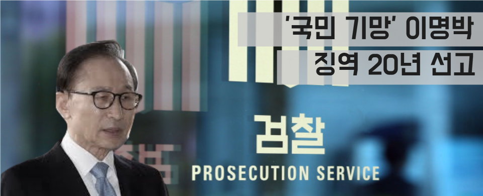 [IE 정치] 다스 실소유주로 약 349억 원대 비자금을 조성한 혐의를 받아 재판에 넘겨진 이명박 전 대통령이 징역 20년 선고 요청을 받았다.