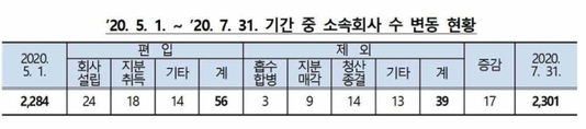 [IE 산업] 대기업들이 디지털 콘텐츠·온라인 서비스 업종에 대한 사업체를 설립하거나 지분을 취득하는 방식으로 계열사에 편입한 사례가 급증했다. 신종 코로나바이러스 감염증(코로나19)가 확산하면서 비대면 수요가 급증하자 이에 관련한 사업 확장을 진행한 것이다. 5일 공정거래위원회(공정위)가 발표한 '최근 3개월간 대규모 기업집단 소속회사 변동 현황'에 따르면 지난 5월1일 2284개였던 대규모 기업집단(64개)의 소속회사는 지난달 31일 기준 2301개로 총 17개 증가했다. 26개 집단이 56개사를 소속회사로 편입했으며 23개 집단이 39개사를 흡수합병·지분매각, 청산종결 등을 통해 계열사에서 빼냈다. 이 중 신규 소속회사를 가장 많이 편입한 회사는 SM그룹으로 이 기간 6개를 늘렸다. 이어 카카오가 5곳이었는데, 특히 카카오는 '리모트몬스터회사' '바람픽처스'와 같은 방송 프로그램 제작업 3개사를 인수해 사업을 확장했다. 넷마블은 애니메이션 영화와 비디오물 제작사인 키링을 계열사로 흡수했다. 네이버는 인터넷 정보매개 서비스업 회사 '웹툰엔터테인먼트코리아'를 설립했다. 공정위 관계자는 "코로나19 확산에 비대면 수요가 증가하면서 정보통신기술(ICT)를 주력