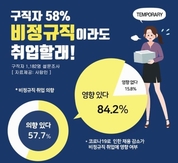 [IE 경제] 신종 코로나바이러스 감염증(코로나19)의 여파로 취업시장이 냉각되자 일터를 원하는 신입 구직자들의 눈높이가 낮아진 것으로 파악됐다. 구인구직 매칭 플랫폼 사람인이 1일 내놓은 '비정규직 취업 의향' 조사 결과를 보면 신입 구직자 1182명 가운데 57.7%가 이에 대해 '의향이 있다'고 응답했다. 지난해 51.8%에 비해 5.9%p 오른 것으로 이 답변자 중 84.2%는 코로나19 생각이 달라졌다는 취지의 대답을 했다. 전공별로는 ▲사범계열(76.9%) ▲사회과학계열(66.4%) ▲인문·어학계열(66%) 전공자들에 비해 이·공학계열(45.5%)과 상경계열(50%)의 비정규직 취업 의향은 상대적으로 낮았다. 또 비정규직 취업 이유는 '당장 취업이 급해서'가 51.2%로 최다였고 차순위는 ▲직무 경력을 쌓으려고(46.9%) ▲코로나19로 정규직 공고가 많이 줄어서(40%) ▲구직 공백 기간을 줄이려고(32.3%) ▲경기 악화 때문에 기업 채용이 감소할 것 같아서(29.2%) ▲정규직 전환 가능성을 기대해서(20.2%) 등이 뒤를 따랐다. 아울러 비정규직 지원 시 최우선으로 보는 조건은 '정규직 전환 가능성'이 34.5%의 답변을 얻어 최상단에 자리