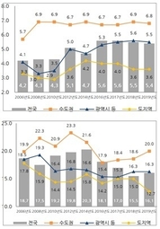 [IE 경제] 지난해 자기 집을 마련한 비율이 높아졌지만 이는 결국 빚과 직결된 것으로 나타났다. 국토교통부가 1일 발표한 '2019년도 주거실태조사' 결과를 보면 자가에 거주하는 자가점유율은 58.0%, 자가를 보유한 자가보유율은 61.2%로 2006년 이후 각각 최고치였다. 또 2019년 전체가구의 평균 거주기간은 7.7년으로 2018년과 같았으나 자가가구는 10.7년에 이르러 3.2년인 임차가구(무상제외)에 비해 오래 거주하고 있었다. 지역별로는 도지역(10.0년)에 이어 광역시(7.4년), 수도권(6.3년) 순이었다. 생애 최초 주택 마련까지 걸린 시간은 지난해 6.9년으로 2018년 7.1년보다 살짝 줄었고 무주택 기간도 11.9년에서 0.7년 짧아진 11.2년이었다. 다만 이 기간 주택담보대출이 급증한 가운데 작년 12·16 주택시장 안정화 대책 발표 이후에도 서울 지역 아파트값 오름세가 여전해 추가 대책 마련이 시급해 보인다. 이날 한국은행에 따르면, 작년 4분기 말 기준 국내 가계신용 잔액은 1600조2000억 원으로 이 가운데 주택담보대출이 842조9000억 원이었다. 3분기 830조3000억 원부터 점증해 올 1분기에는 858조2000억 원
