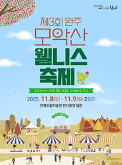 [IE 문화] 금주 [나들이 가GO이슈] 중 무작위 선정 행사는 이달 8일부터 9일까지 이틀간 전북 완주군 구이면 전북도립미술관 야외광장(모악산길 111-6) 일원에서 '모악산에서 리셋! 몸도 마음도 가벼워지는 순간'을 기치로 걸어 전개하는 '완주 모악산 웰니스 축제'. '웰빙·건강·행복'을 테마로 아름다운 모악산을 배경 삼아 누구나 몸과 마음을 치유하고 건강한 가을 낭만을 즐기는 힐링 이벤트. 입장료 무료인 이 축제 기간 중 방문객에게 가장 큰 호응을 얻는 '3대 필참(必參) 이벤트'는 모악산 숲산책, 구이저수지 둘레길 걷기, 헬스 릴레이 게임 및 명랑 운동회. 모악산 숲산책은 도립미술관 일원 소나무 숲과 해먹, 산책로를 활용한 생태 힐링 산책 프로그램으로 회차별 30명이 한정 참가해 신청자가 많지만 만족도는 최상인 시그니처 이벤트. 구이저수지 둘레길 걷기는 숲 해설사 안내로 자연생태길을 걸으며 지역 술테마박물관까지 관람하는 테마 체험. 생태 해설과 문화 관람이 결합된 대표 인기 체험. 남녀노소 누구나 참여 가능한 헬스 릴레이 게임 및 명랑 운동회는 건강 줄넘기, 훌라후프, 릴레이 게임 등으로 활력과 웃음이 넘치는 대규모 그룹 참여 이벤트. 시니어 참가자까