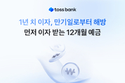 [IE 금융] 토스뱅크가 가입 즉시 1년 치 이자를 먼저 받을 수 있는 '먼저 이자받는 정기예금 12개월 상품' 출시. 17일 토스뱅크에 따르면 해당 상품은 연 2.80%(세전) 금리를 적용했으며 예금 가입과 동시에 12개월 치 이자를 선지급하는 구조. 예를 들어 1000만 원 가입 시 약 28만 원(세전)의 이자를 즉시 수령 가능. 가입 금액은 100만 원부터 최대 10억 원까지며 토스뱅크 애플리케이션(앱)을 통해 비대면 가입 가능. 예금자보호법에 따라 원금과 이자를 합산해 1인당 1억 원까지 보호. 먼저 이자받는 정기예금은 이자를 가입일에 지급하며 원천징수는 예금 해지 시점에 이뤄짐. 중도해지 시에는 가입 시 지급된 이자를 차감한 뒤 세후 중도해지 이자가 반영된 금액이 입금. 이번 상품 출시로 토스뱅크는 3·6·12개월 정기예금 라인업을 완성. 고객은 단기·중기·장기 자금 운용 목적에 따라 예금 상품을 선택 가능. 또 토스뱅크는 기존 만기 일시 지급 방식에서 벗어나 '먼저 이자받기' '지금 이자받기' '나눠모으기 통장' 등 이자 지급 시점을 선택할 수 있는 상품을 확대. /이슈에디코 김수경 기자/ +플러스 생활정보 선이자 정기